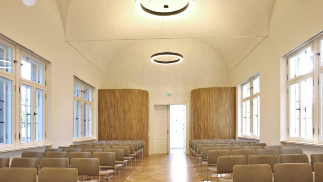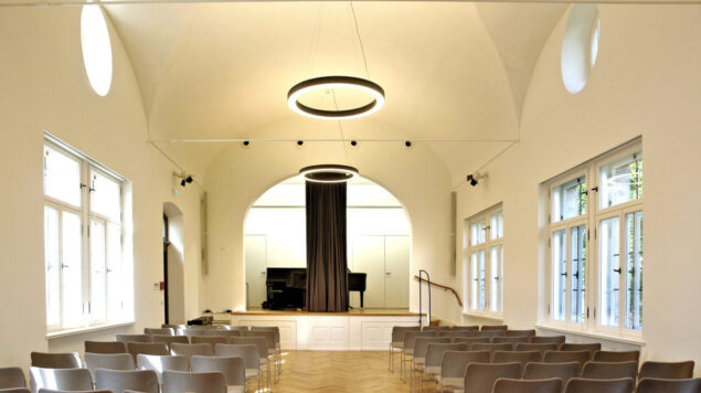 Das denkmalgeschützte Gebäude musste innen wie außen von Grund auf saniert und für den Betrieb als Festsaal der Musikschule angepasst werden.